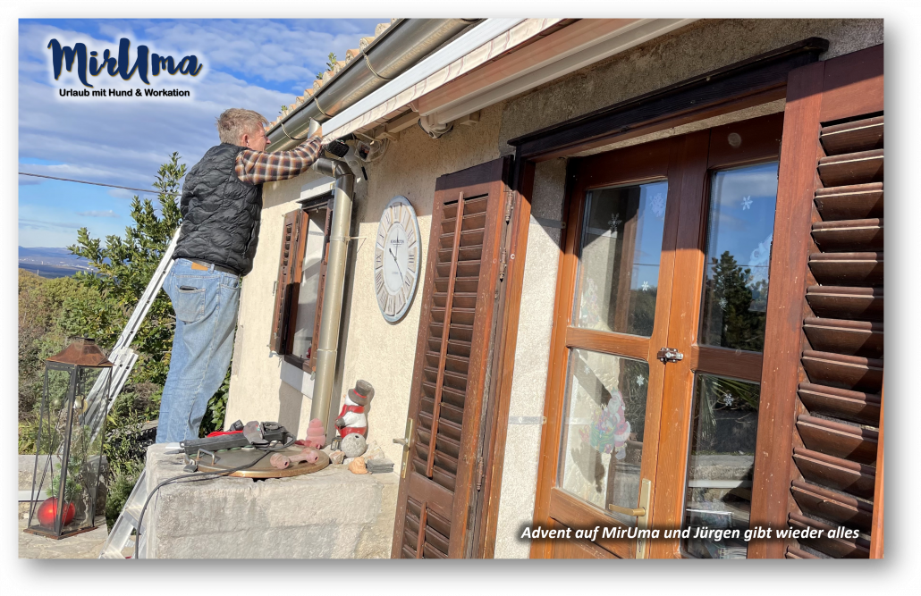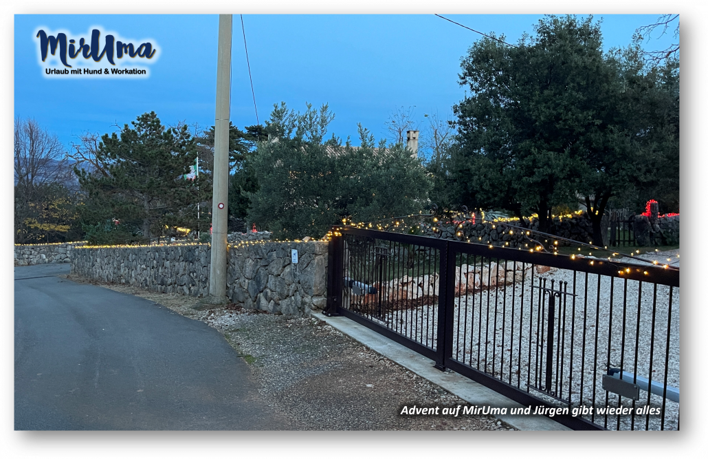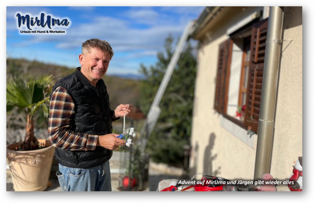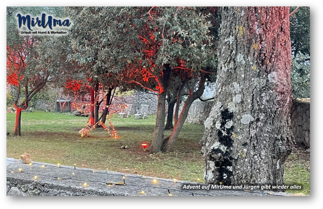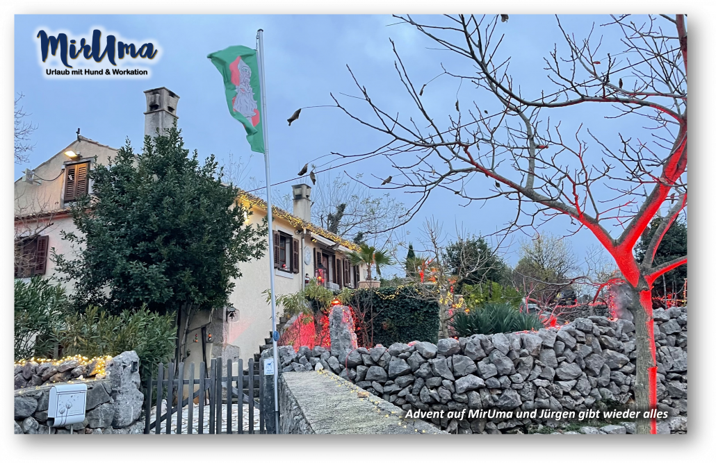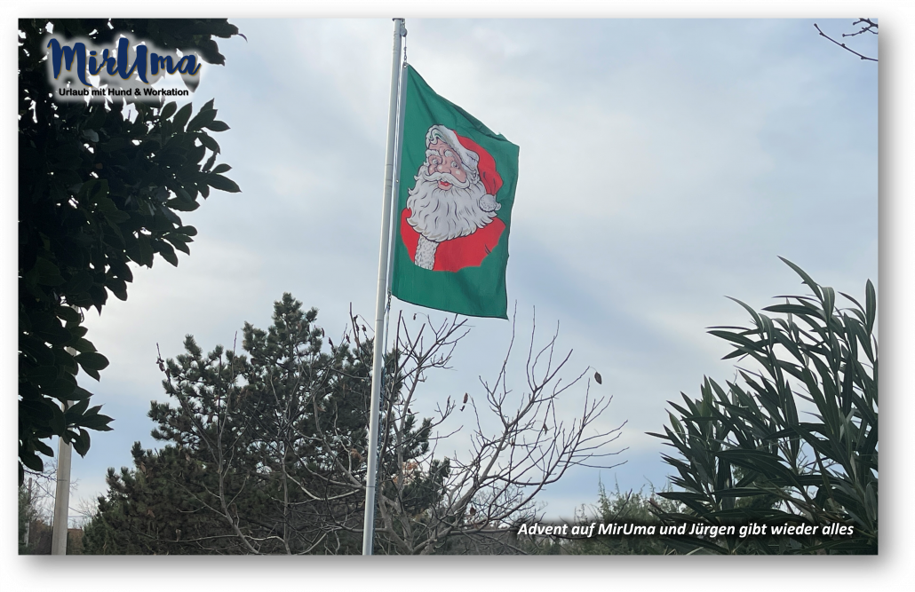 Jürgen hat auch wieder unsere großen Sterne montiert und platziert. Die Nikolausflagge ist gehisst. Der Santa begrüßt einen schon von weitem. Und unser Außenbereich lässt nicht nur mich strahlen, sondern alle Besucher, die zufällig oder bewusst an MirUma vorbeispazieren.