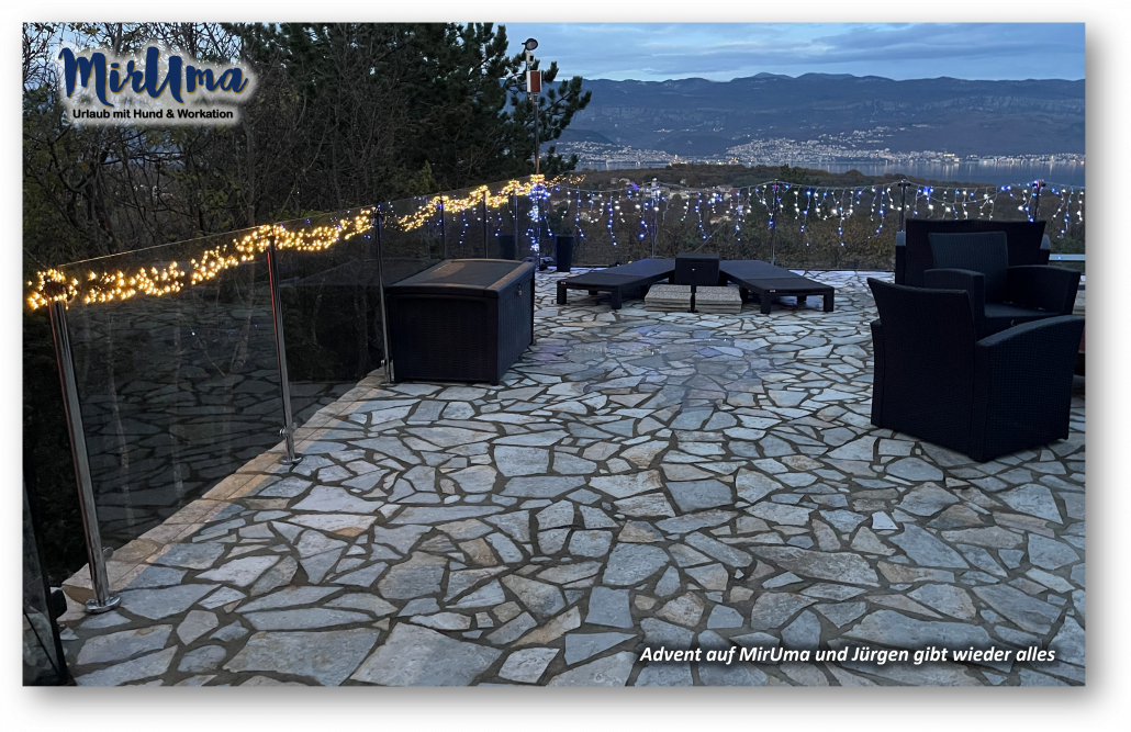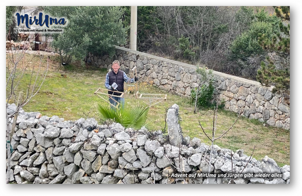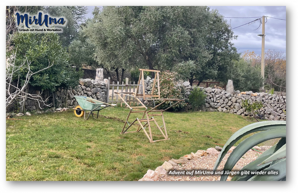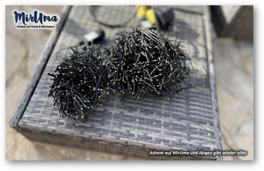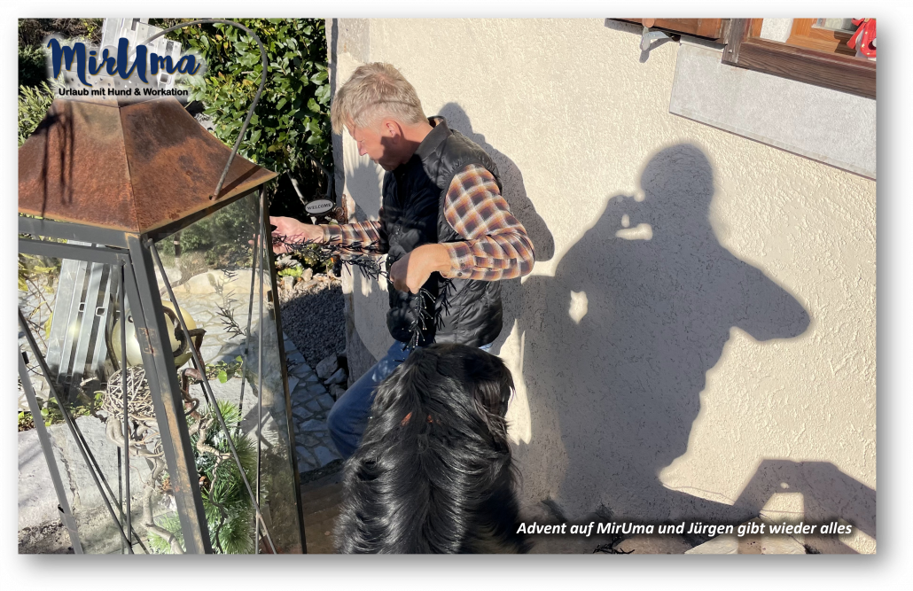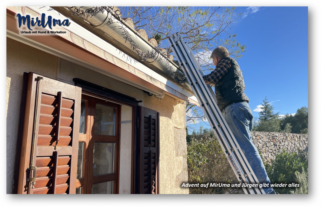 Jürgen hat auch wieder unsere großen Sterne montiert und platziert. Die Nikolausflagge ist gehisst. Der Santa begrüßt einen schon von weitem. Und unser Außenbereich lässt nicht nur mich strahlen, sondern alle Besucher, die zufällig oder bewusst an MirUma vorbeispazieren.